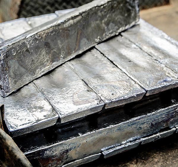 Lead ingots are often used in batteries while alloys of lead and tin with antimony show enhanced properties for bullets, solders and bearings.
